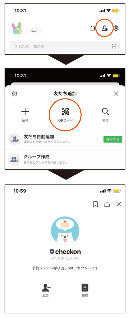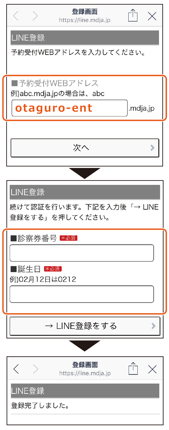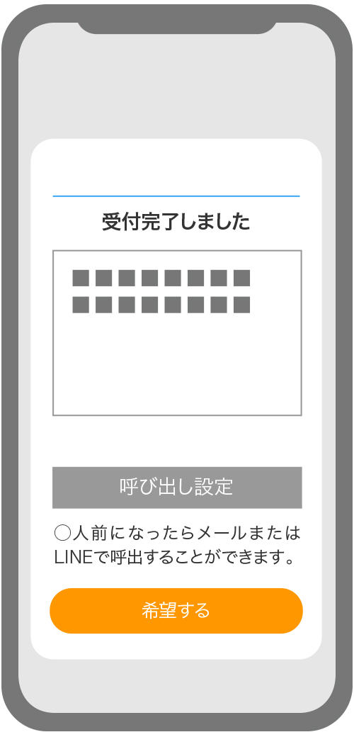 次回WEB予約・受付時、お知らせ・呼出選択で「LINE」が出現し、ご利用可能となります。