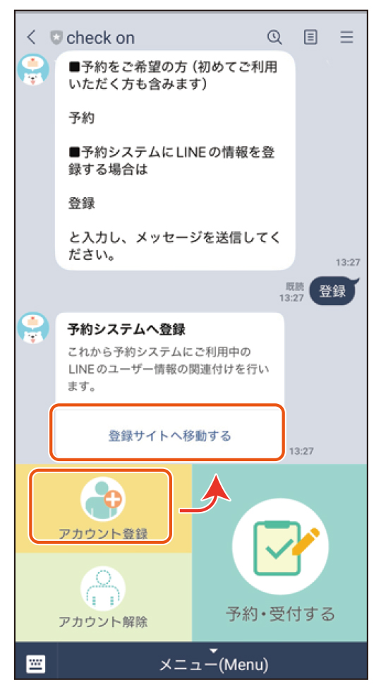 リンク先にて「友だち追加」を行い、左下「アカウント登録」を押してください。
