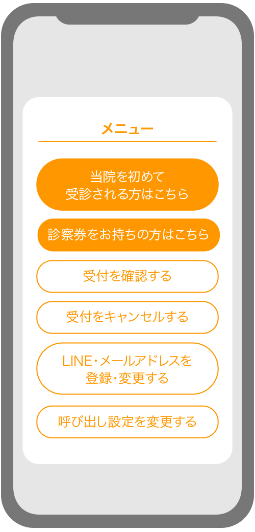 メニューから「診察券をお持ちの方はこちら」を押してください。